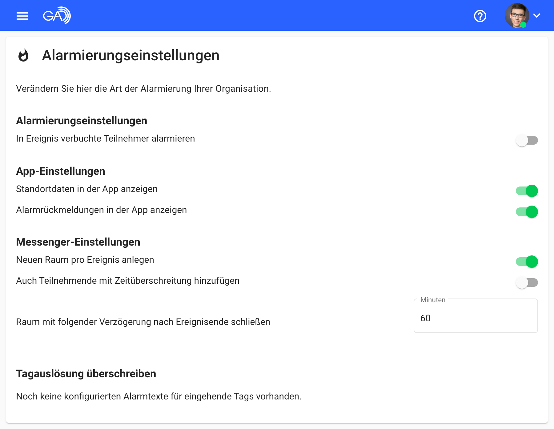 Diese Funktion ist standardmäßig deaktiviert und kann in den Organisationseinstellungen eingerichtet werden. Dort können Sie auch festlegen, dass Teilnehmende ohne Rückmeldung ebenfalls zum Raum hinzugefügt werden. Außerdem können Sie die Zeitspanne verändern, nach der ein Raum automatisch geschlossen wird, sobald das Ereignis abgeschlossen wurde.
