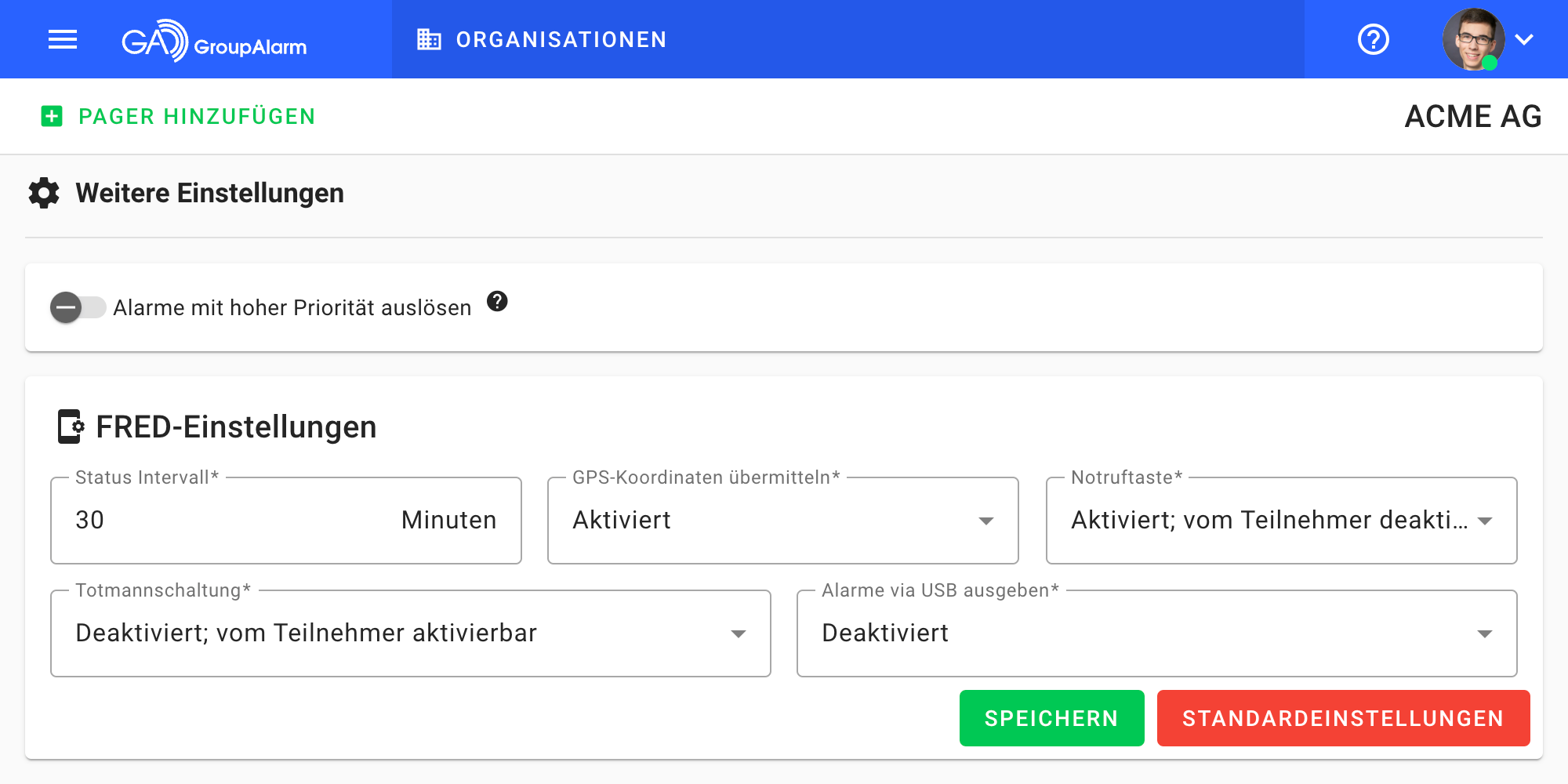 Administratoren können nun die Einstellungen der FRED-Pager direkt in GroupAlarm konfigurieren.
