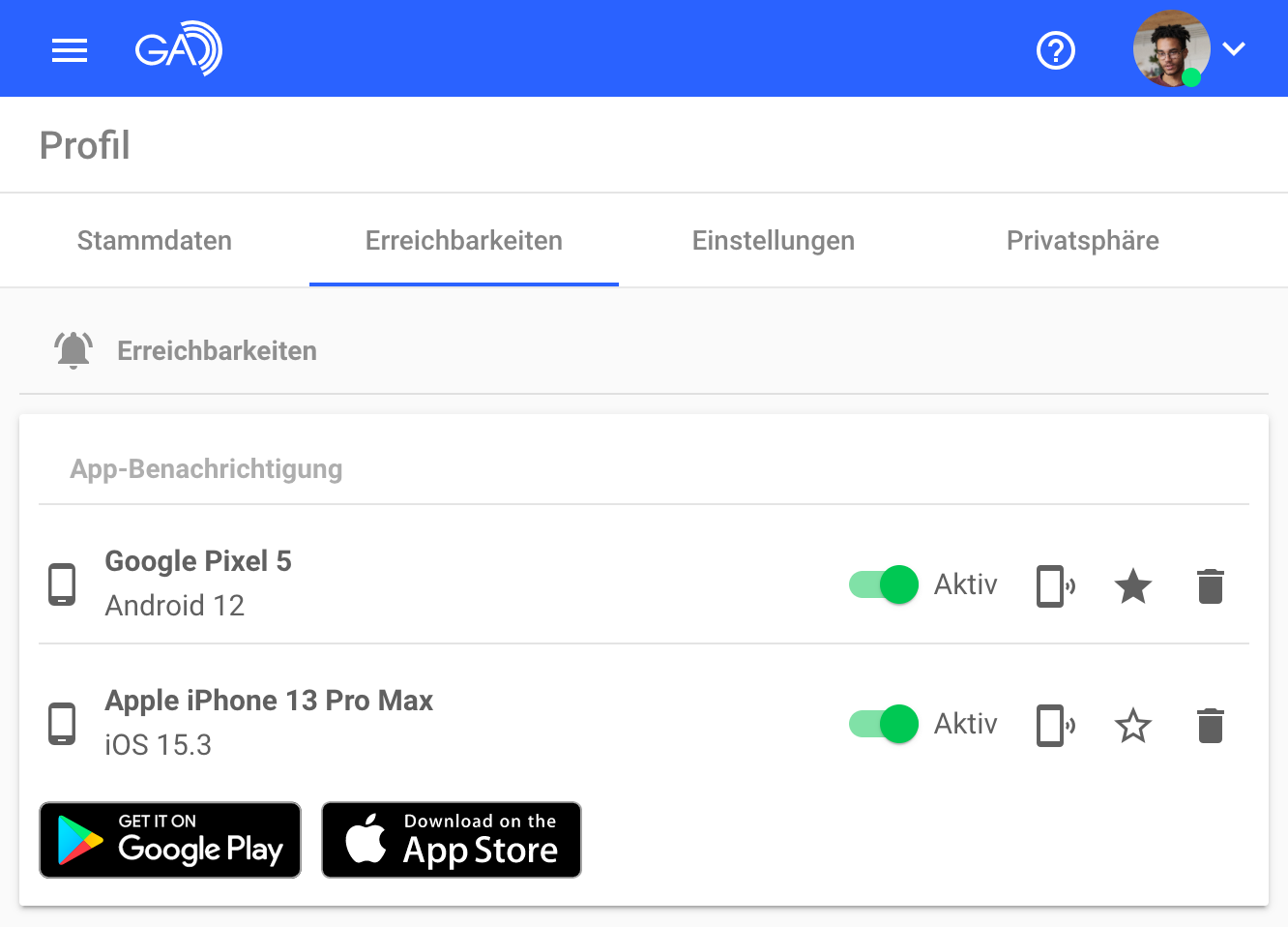 Sie können beliebig viele Smartphones mit unserer GroupAlarm-App als persönliche Erreichbarkeit hinterlegen.