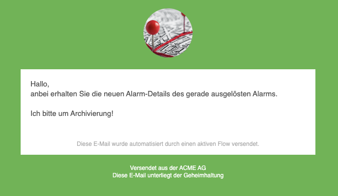 Sollten Sie einen Organisationavatar gesetzt haben, so wird dieser bei organisationsspezifischen E-Mails an der Stelle des GroupAlarm.com-Logos angezeigt. So erhalten die E-Mails Ihrer Organisation einen individuellen Wiedererkennungswert und lassen sich so durch Ihre Teilnehmer einfacher zuordnen.