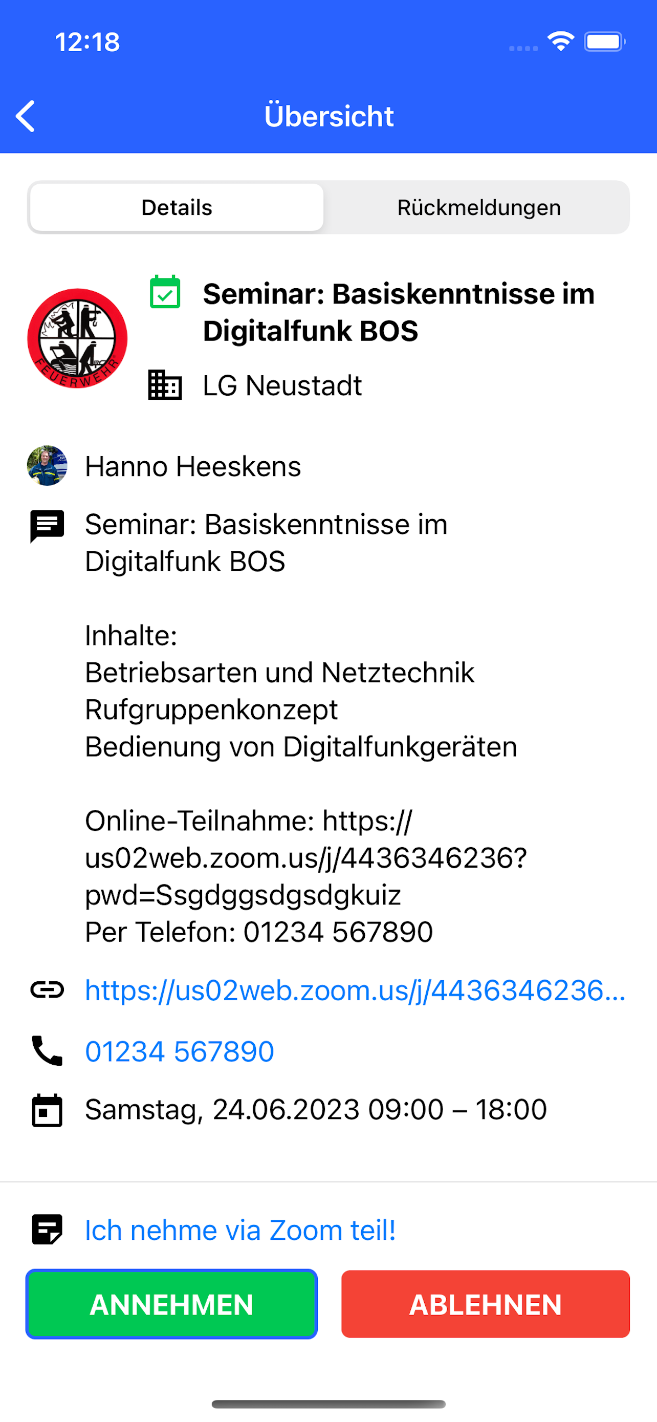 - Anzeige der eigenen Zu-/Absage in der Liste, um offene Rückmeldungen schneller zu erkennen