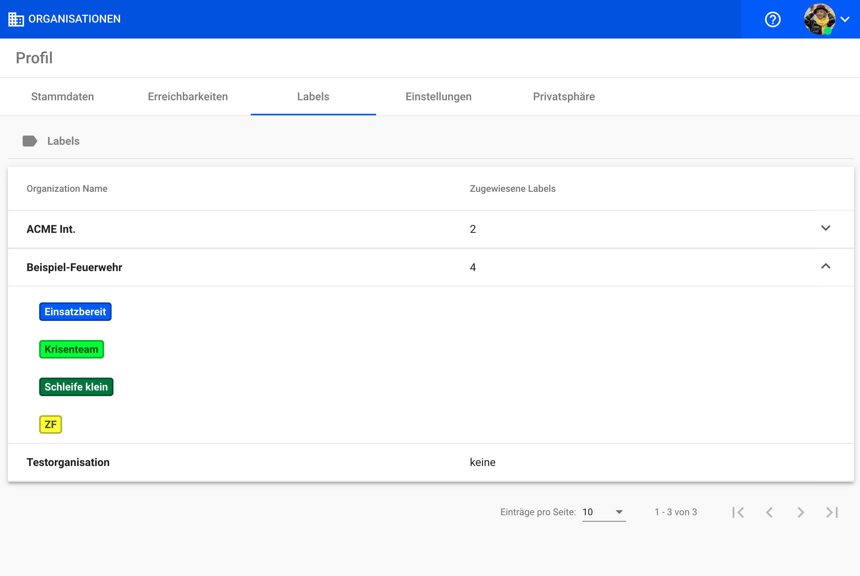 Als Teilnehmer können Sie ab sofort in Ihrem Profil nachvollziehen, welche Labels Ihnen in welchen Organisationen zugewiesen sind. Auf diese Weise können Teilnehmer die ihnen zugewiesenen Labels überprüfen und sehen, ob es Organisationen gibt, an denen sie teilnehmen, denen aber noch keine Labels zugewiesen wurden.