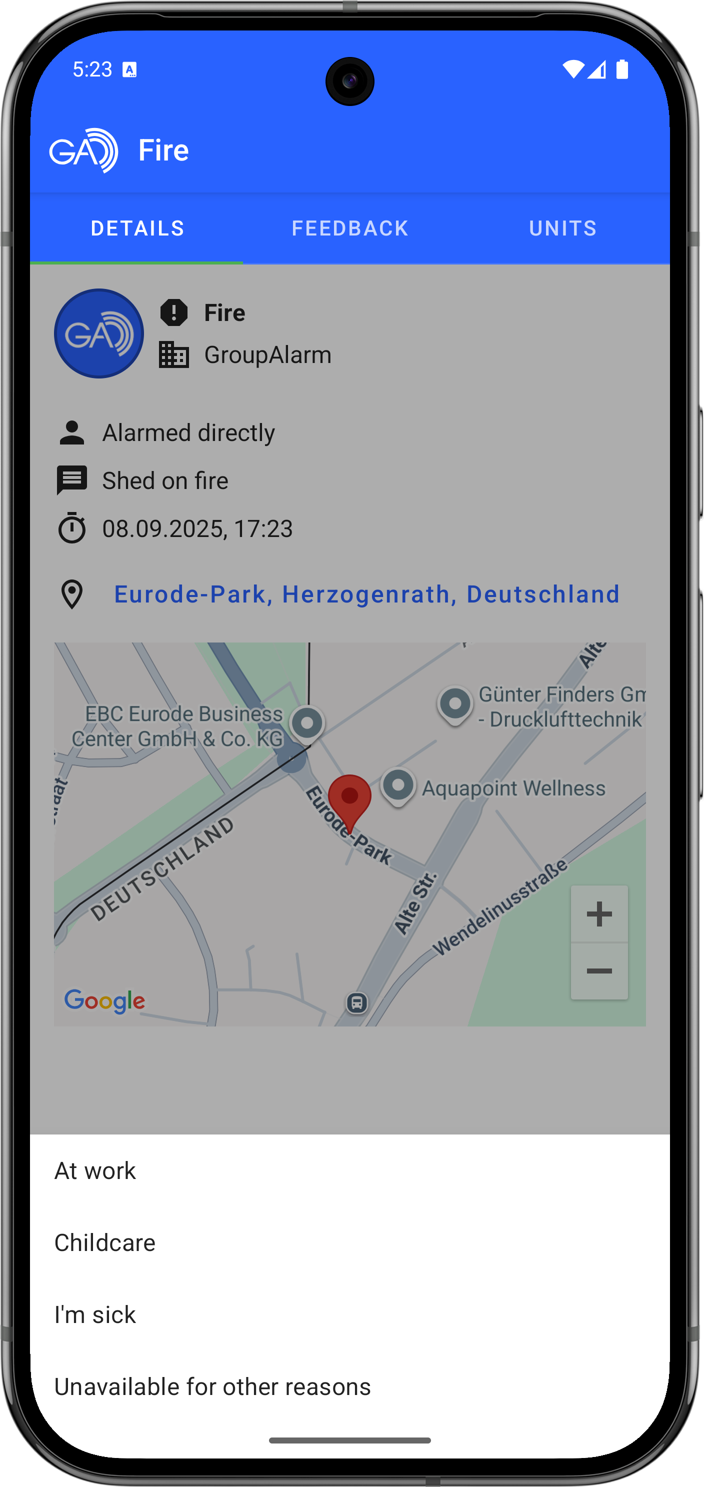 - Emergency personnel can choose whether to come to the equipment depot/location or drive directly to the scene.