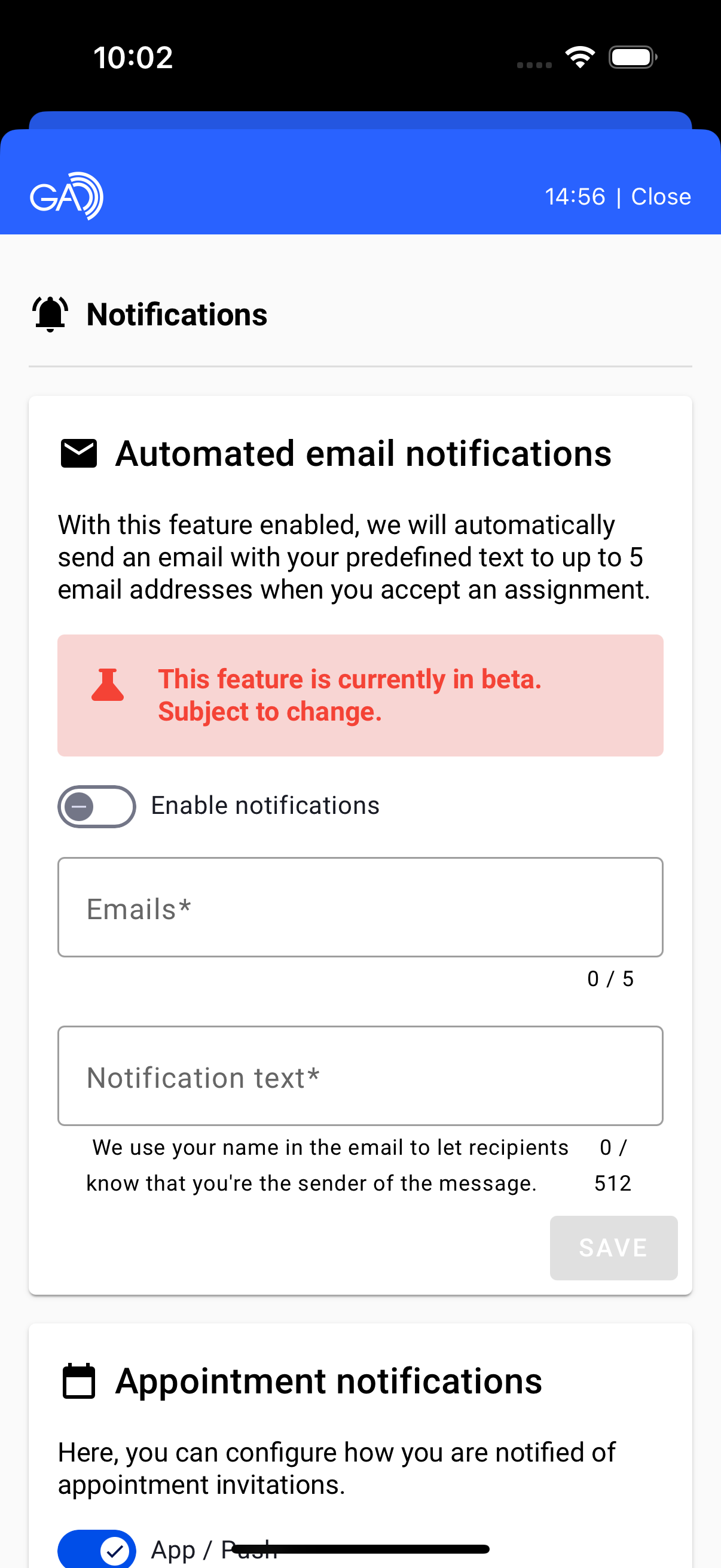 Previously, participants who wanted to change personal data had to use our web app. The new iOS and Android versions of the GroupAlarm app can now access the participant’s profile by clicking on the avatar. This means that the following settings can be accessed directly from the app: